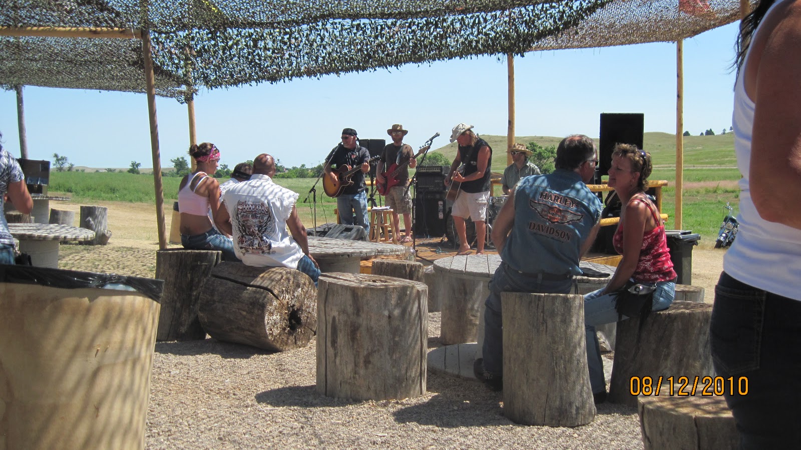 There were plenty of tables, benches and old tree stumps available to sit down on and rest. The atmosphere was warm and relaxing. There was also a band playing. So we ordered some food and drinks and sat down to listen to the band. After a week's worth of riding and fun events along with our morning hike, this felt like the most relaxing place on earth. I don't know what it was, the ambiance, the timing, the warm weather or our vacation days winding down, but it sure felt good to be sitting still.